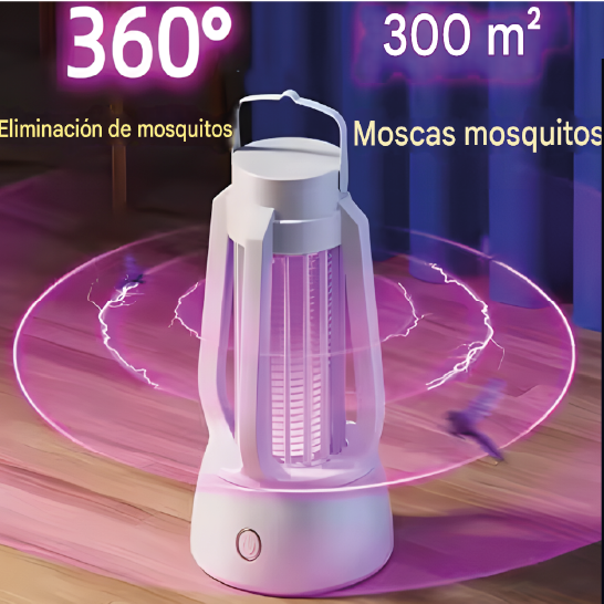 ✨ Atrae a los insectos con luz, los elimina sin químicos ni ruido.